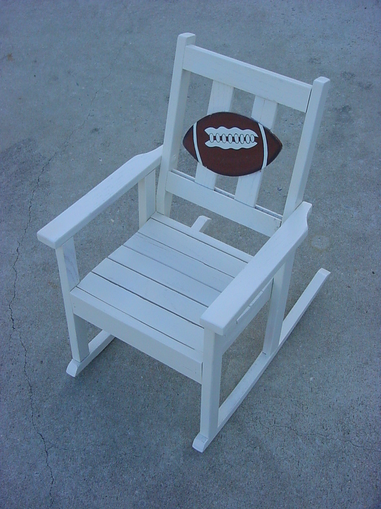 On occasion, we like to veer off and do something a little different. In this case, we have updated a CHILD’S “Football Fan” ROCKING CHAIR that one of wonderful neighbors gave us.