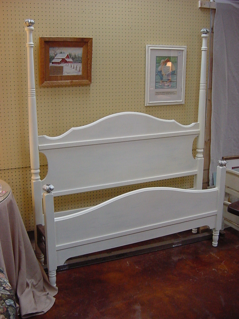 A Distressed FULL SIZED “Cottage White” HEADBOARD / FOOT BOARD with RAILS has been moved to ENCORE RESALES Consignment & Furniture Store for you.