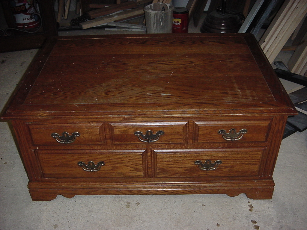 We just completed updating a large Broyhill Coffee Table to be a Big “Man Cave” Coffee Table as can be seen in the pictures…