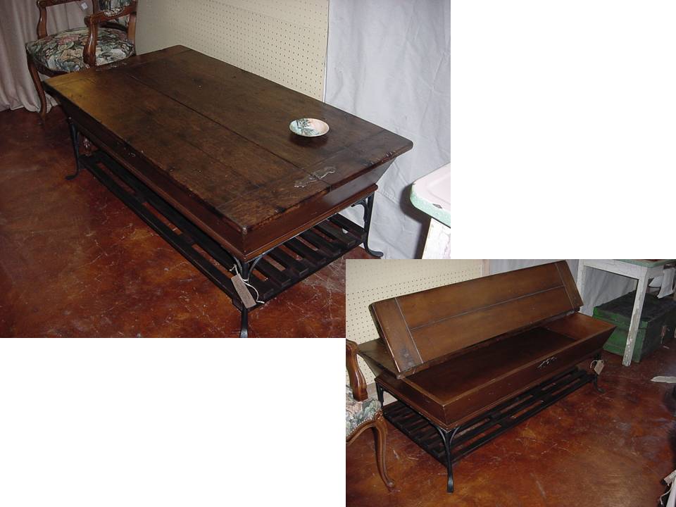 From Yesterday: The Actual “MAN CAVE COFFEE TABLE” with Hidden Storage Compartment with Handmade Wood Slat Shelf:
