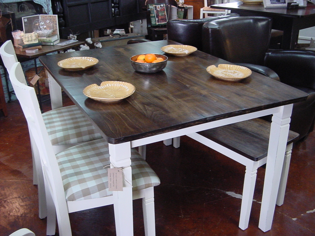 As with the majority of our Handmade table and refinishing work, this Country Table / Chairs / Bench Ensemble are displayed for sale at Encore Resales Consignment & Furniture Store.