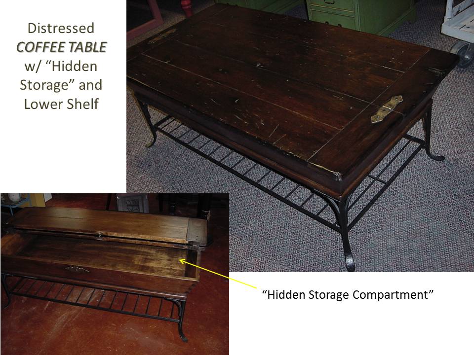 OK, we know you are wondering why the Refurbished and Beefed Up coffee table has been referred as a “She Den” Coffee Table. Well… when one opens the lid to the hidden compartment, your olfactory nerves will detect a slight, but pleasant perfume aroma. Seriously!
